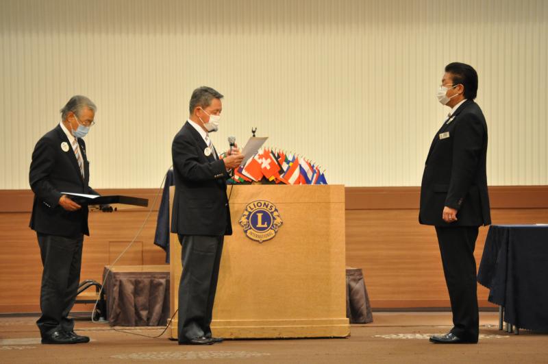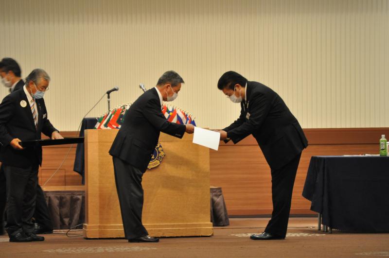| 前地区ガバナーへ国際会長感謝状伝達 | 前地区ガバナー・地区名誉顧問会議長 | L鈴木 善一 |