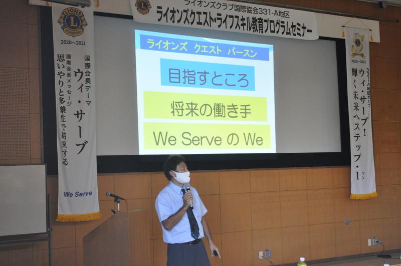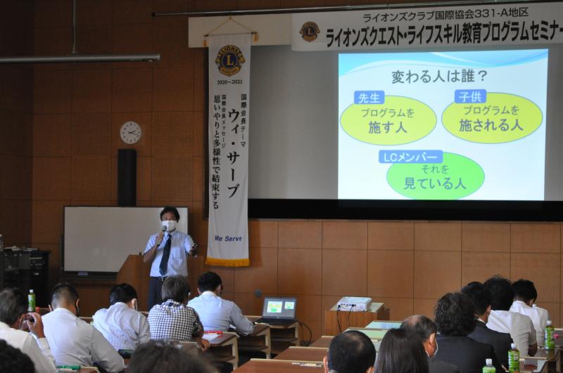 篠田先生の前にライフスキル教育プログラム説明員のL設楽(地区GSTコーディネーター)よる「ライオンズクエスト」、「ライフスキル教育プログラム説明員」などの説明をされました。
